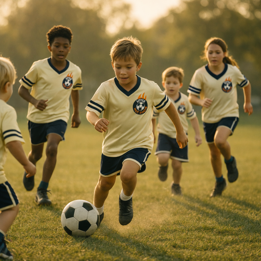 Official Little Hot Shots Uniform—lightweight, breathable, and built for everyday play. Required for all seasonal camp programs.